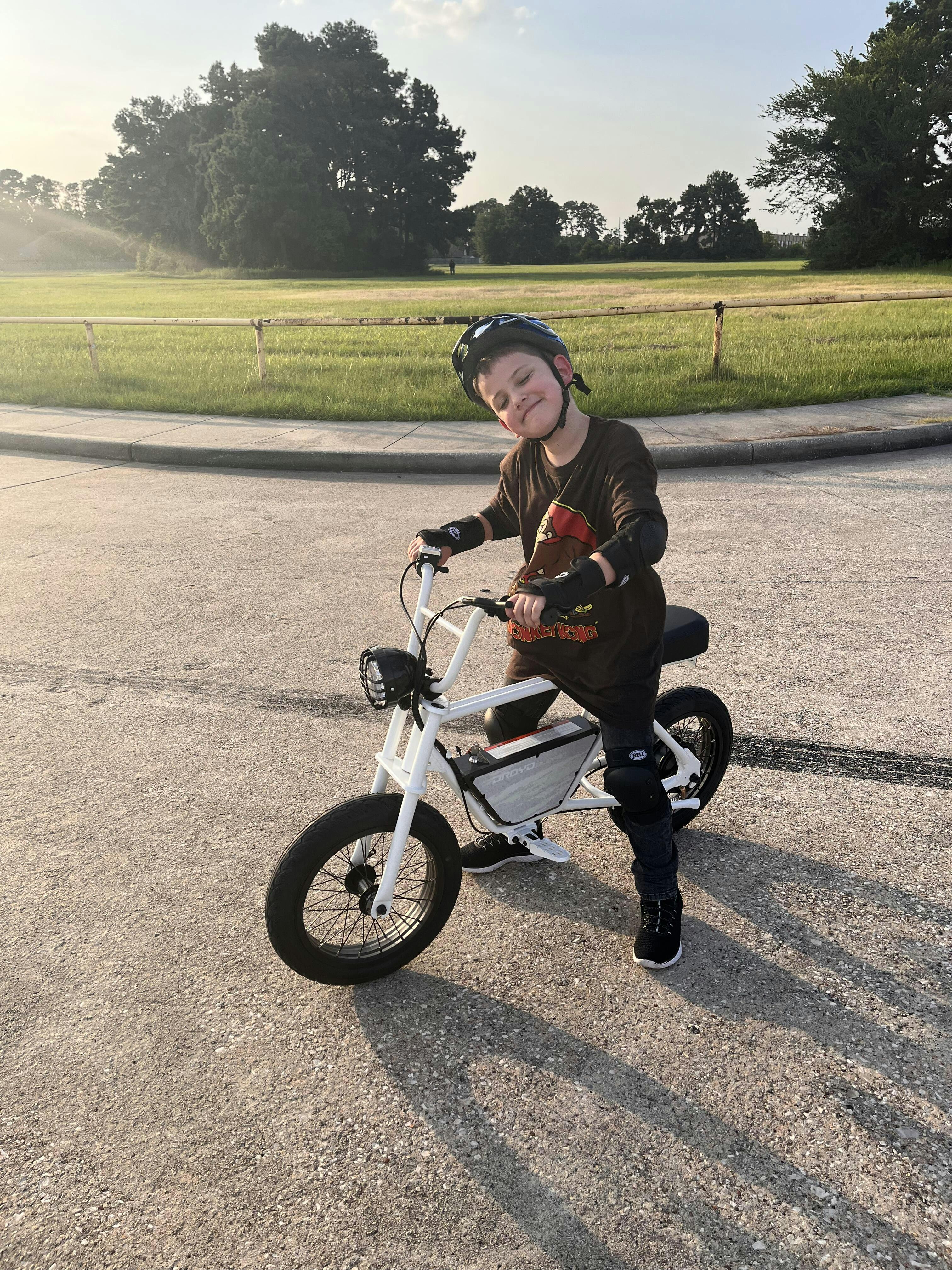 My son is just making the transition from pedaling to electric so to really feel the wind in his hair, made his day. His dad rides a Harley motorcycle so the urge to ride is genetic but for now, this speed is perfect.